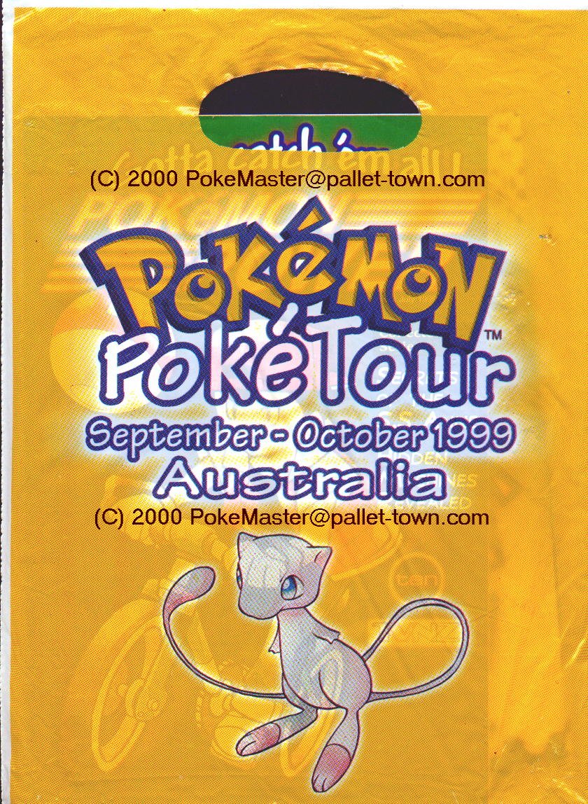 The Bags contain: A copy of the Pokemon Power Comic, a Mew and Pikachu Tatoo, Pokemon product sheet showing avalible items in Australia, 1 PokeTour Pikachu Promo card, a promotional sticker especially designed for the Tour, A Pokemon trading card game playmat.